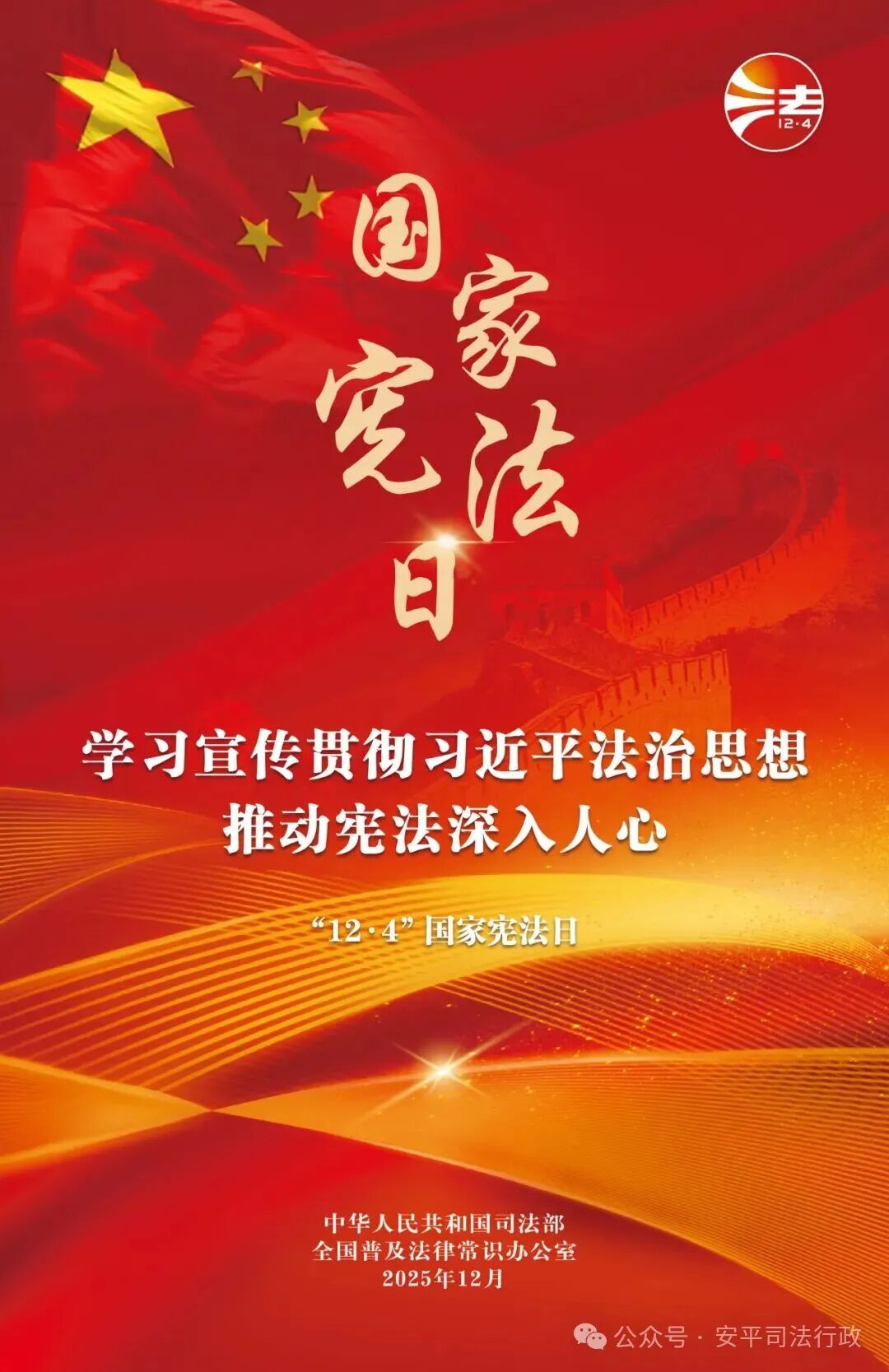 2025年12月4日是第十二個國家憲法日,12月1日至7日第八個“憲法宣傳周”,2025年“憲法宣傳周”主題:學習宣傳貫徹習近平法治思想,推動憲法深入人心。